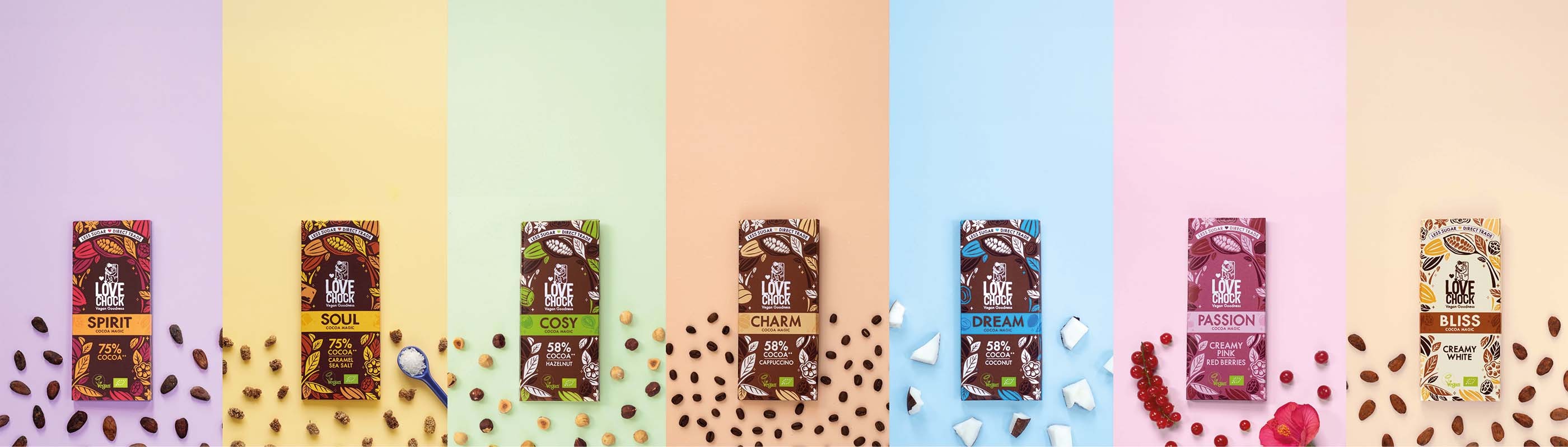 Lovechock ist 100% biologisch, passt wunderbar in eine vegane Ernährung, enthält Flavonoide und ist milch-, soja- und glutenfrei. "Kein raffinierter Zucker" ist Teil unserer Mission. Unsere Schokolade wird mit Inulin gesüßt, und wir verwenden hierbei so wenig wie möglich. Außerdem sind alle unsere Verpackungen seit 2011 als "hauskompostierbar" zertifiziert. Ja, sogar die transparente Folie besteht aus Holzzellulose, die sich innerhalb von nur 90 Tagen in Ihrem Hauskompost zersetzt.