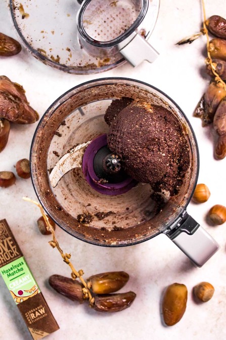 - Gib zunächst die Datteln in eine leistungsstarke Küchenmaschine. Diese werden nun auf höchster Stufe zerkleinert. Nach kurzer Zeit bildet sich eine feste Masse.